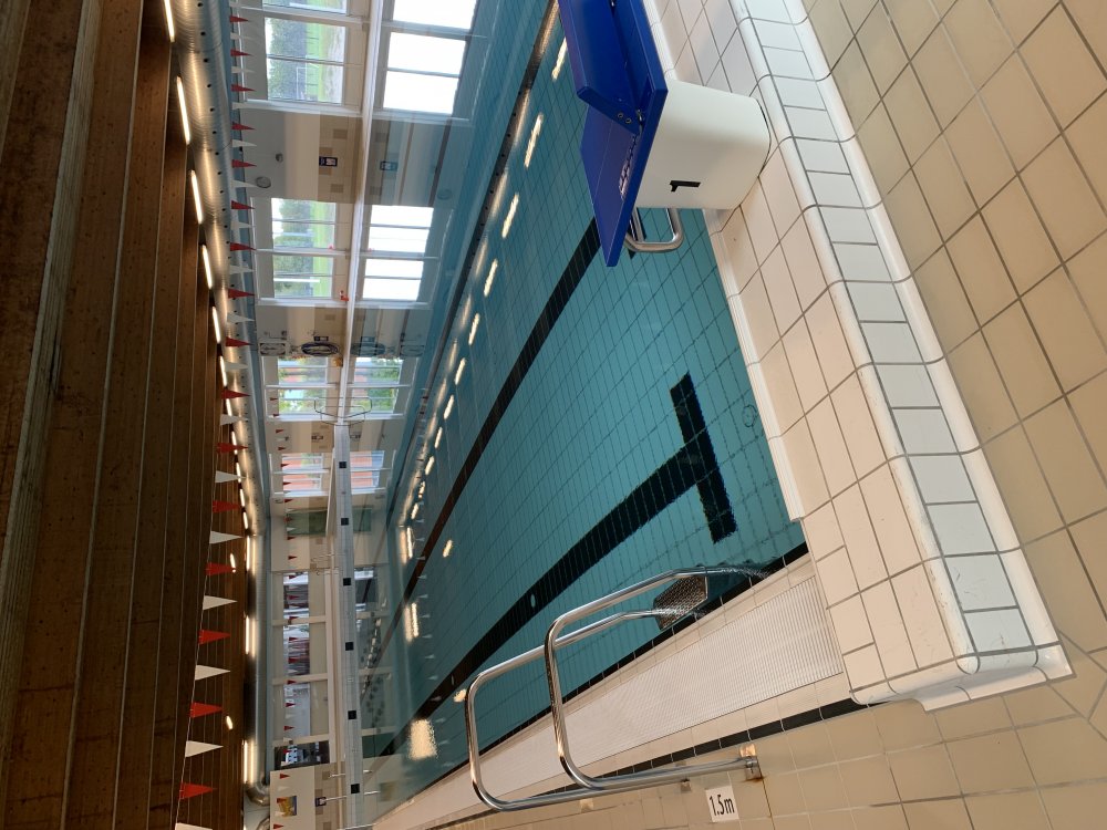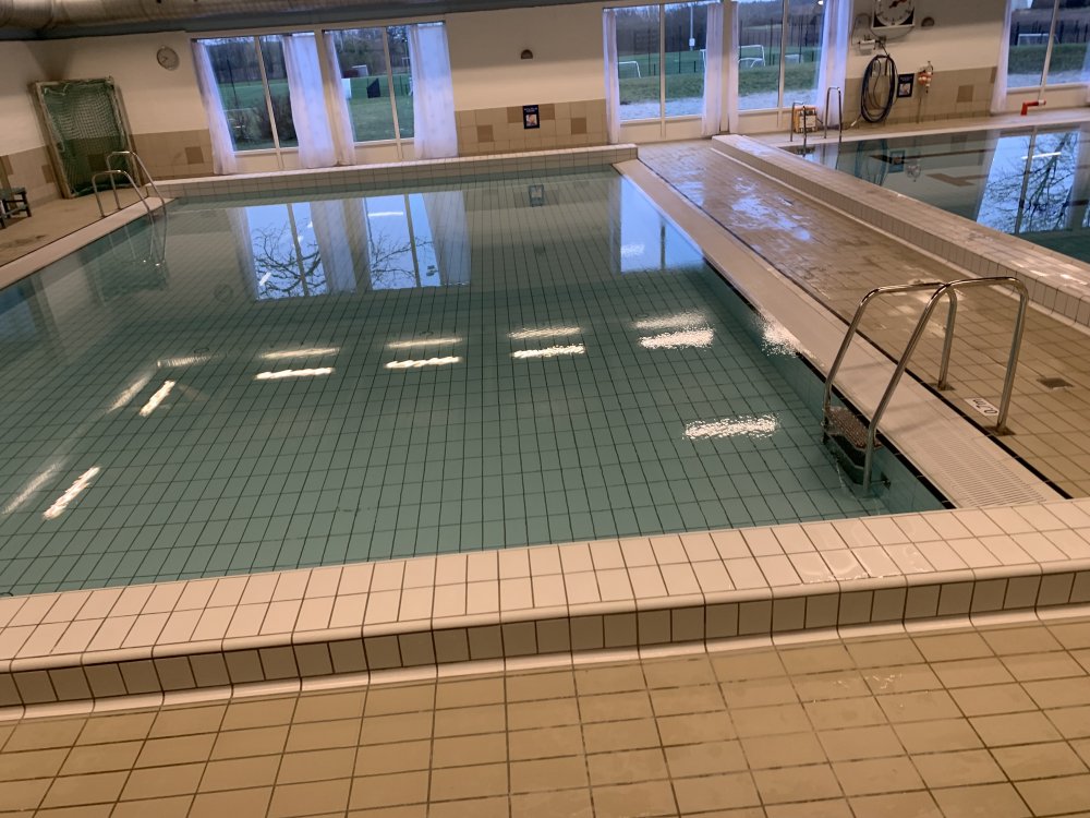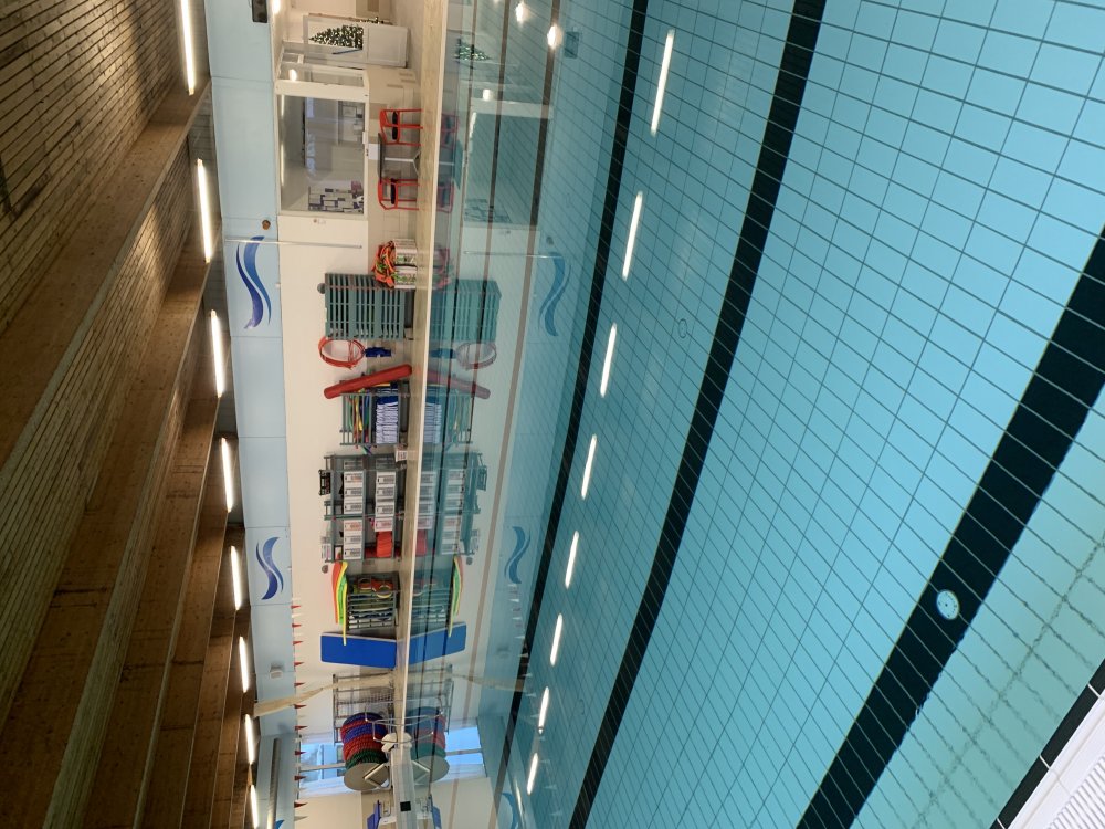 Svømmehallens store bassin med en længde på 25 m og 27,5 grader varmt vand